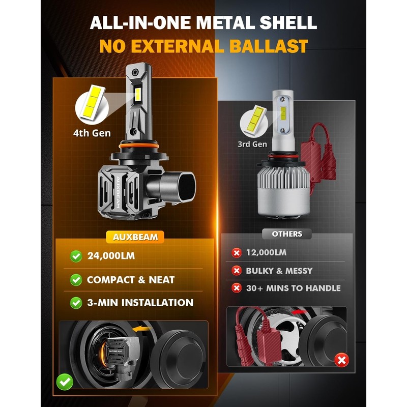 - 99% VEHICLE COMPATIBLE: Built-in new Canbus driver, ensures the stable power flow, allowing the car to continuously recognize the correct current signal, no error codes or flickers.Note:1% sensitive models still need decoders. Please message auxbeam to help slove the problem