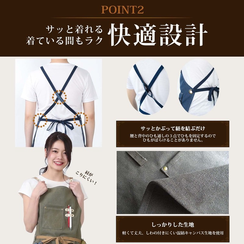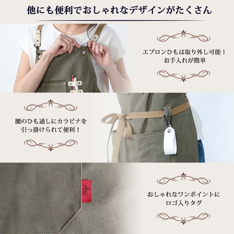 Auxi Apron, For Work, 3 Points Fixed, Prevents Shoulder Straps From Fall Off, Canvas Material, Gardening, Men's, Unisex, One Size Fits Most, Stylish, Cafe (Aguzy), green