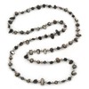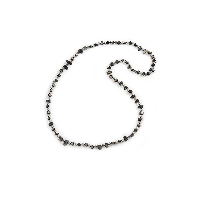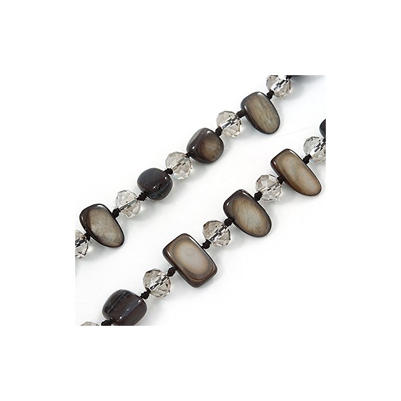 Avalaya Black Shell Nugget and Transparent Glass Crystal Bead Long Necklace/110cm L