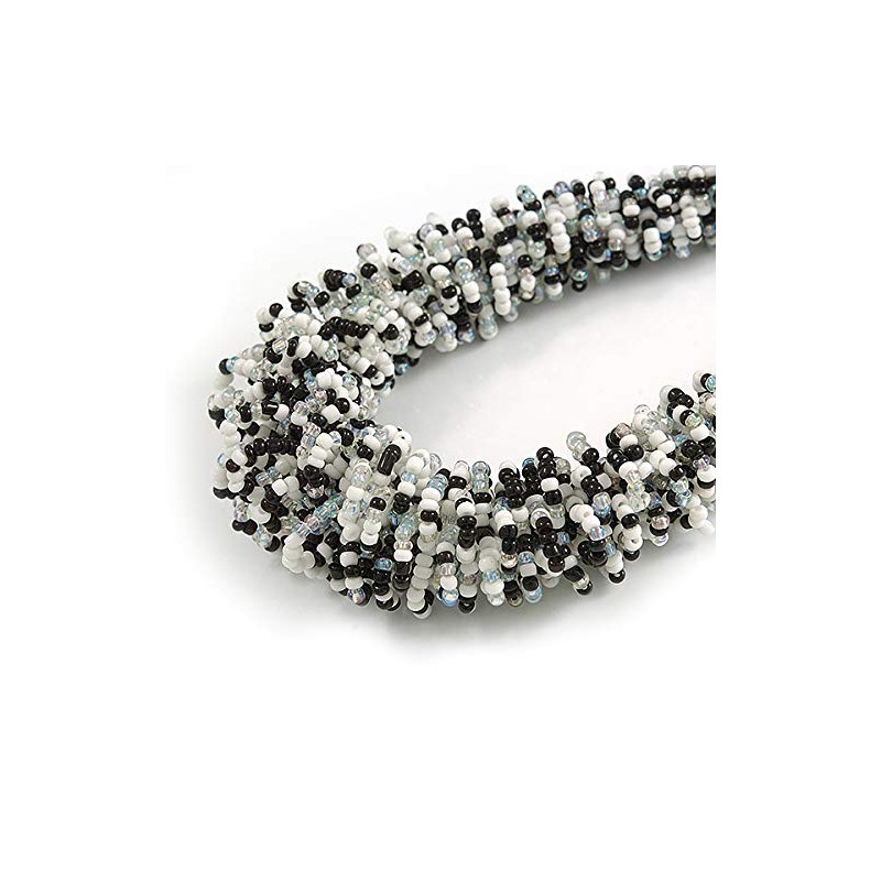 Avalaya Black/White Glass Bead Chunky Necklace/ 60cm Long