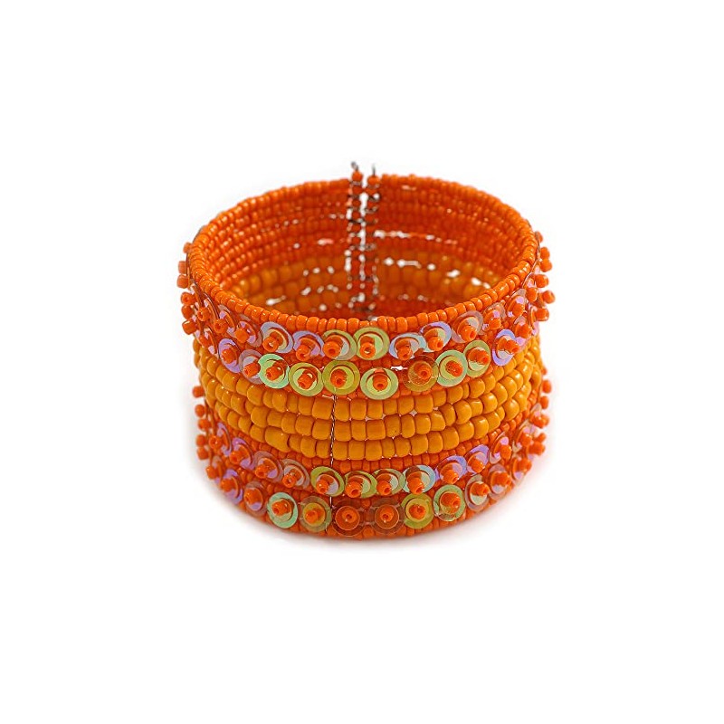 Avalaya Bohemian Wide Beaded Cuff Bangle with Sequin (Pumpkin Orange) - Adjus...