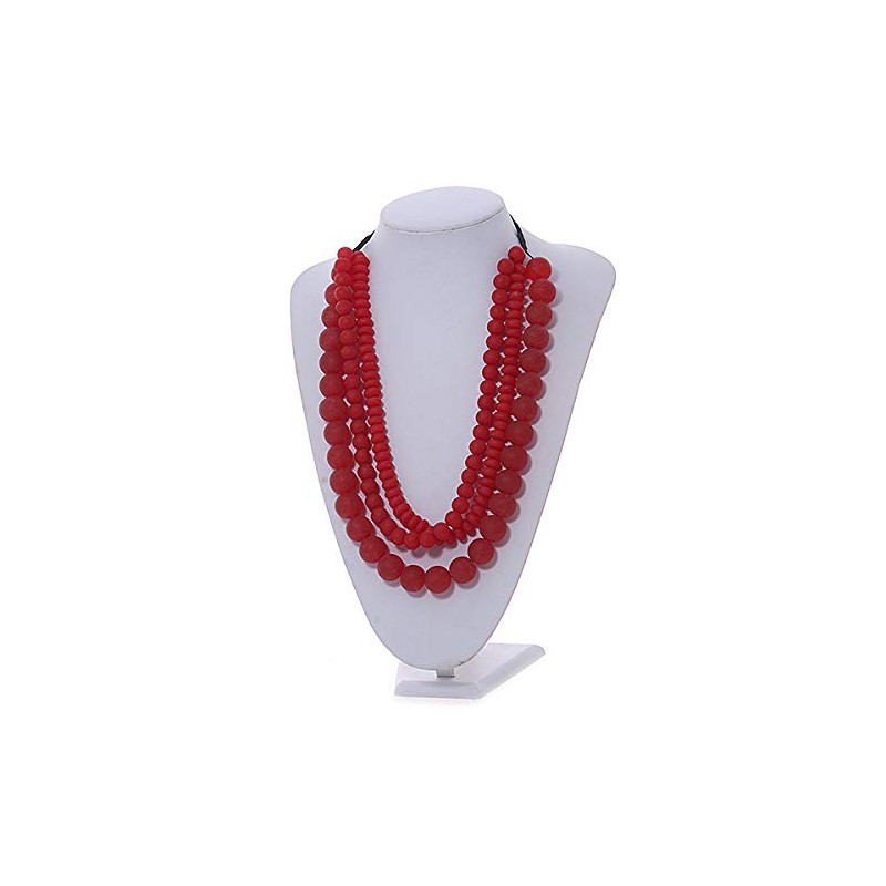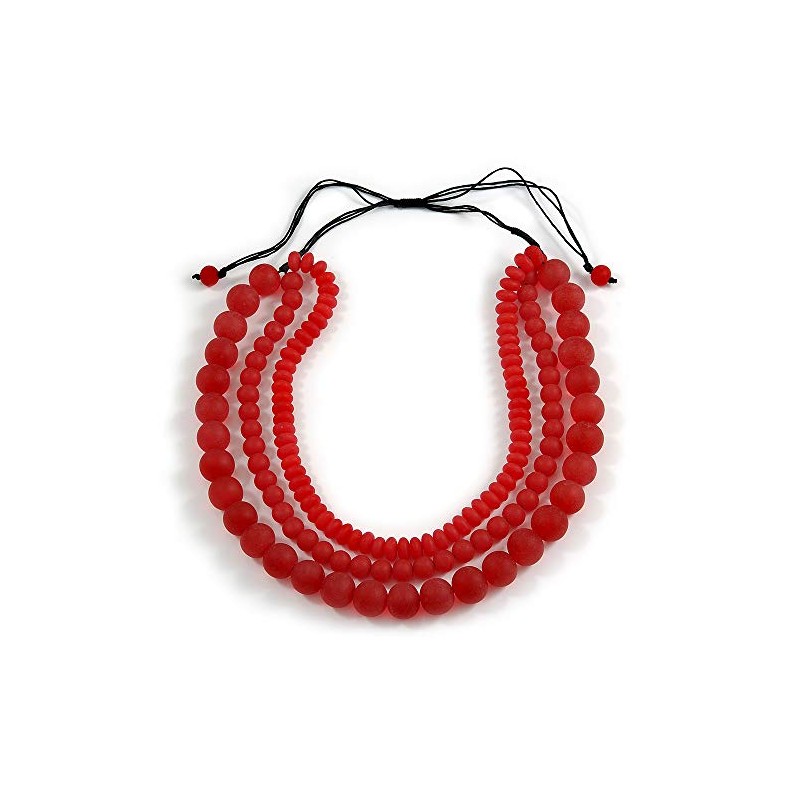 Avalaya Chunky 3 Strand Layered Resin Bead Cord Necklace In Red/60cm-70cm/Adjustable