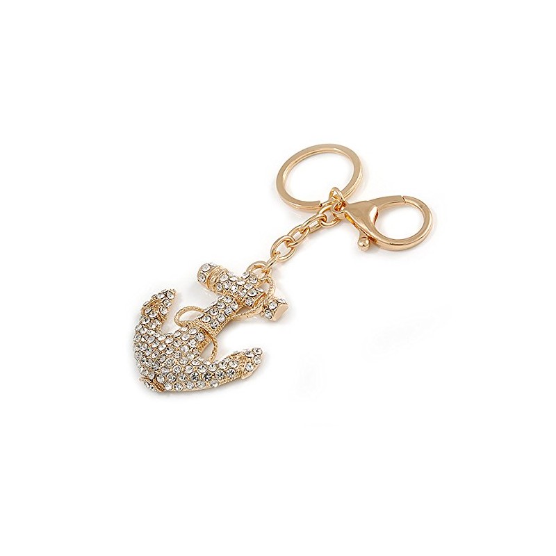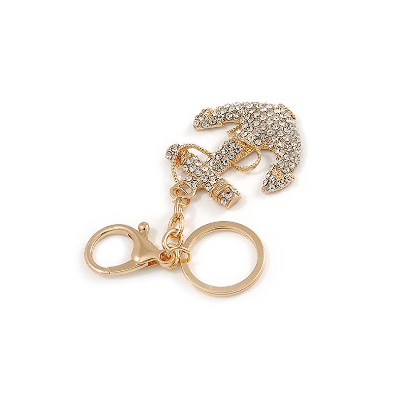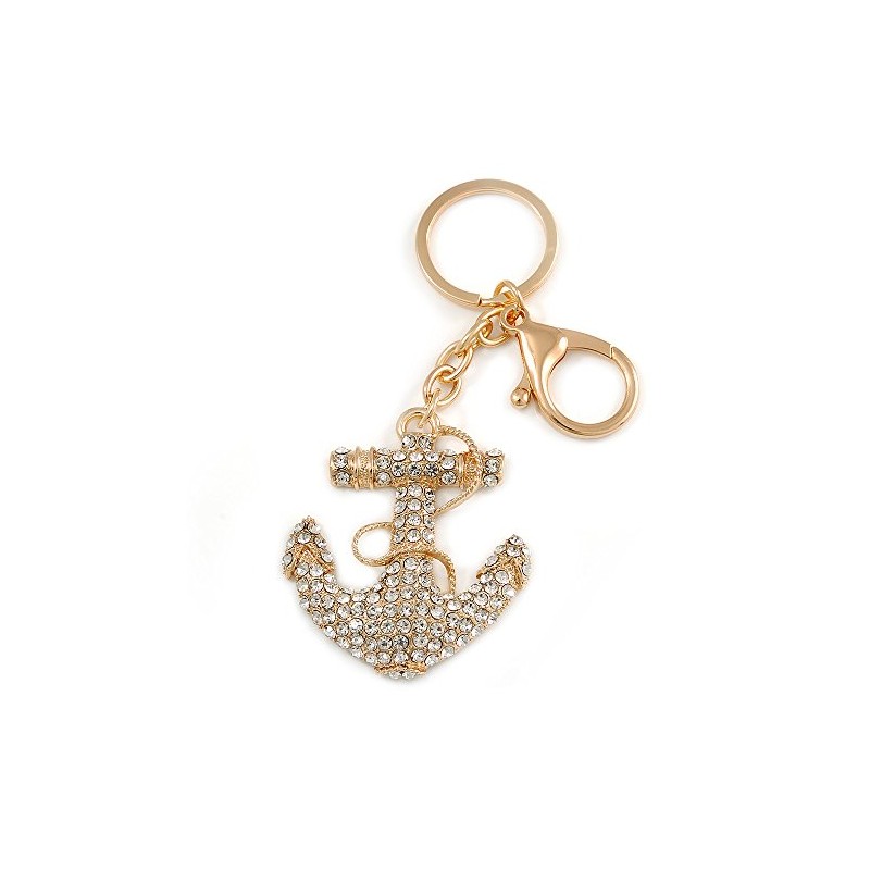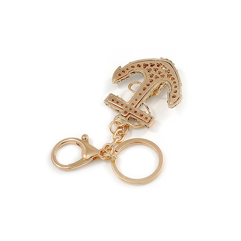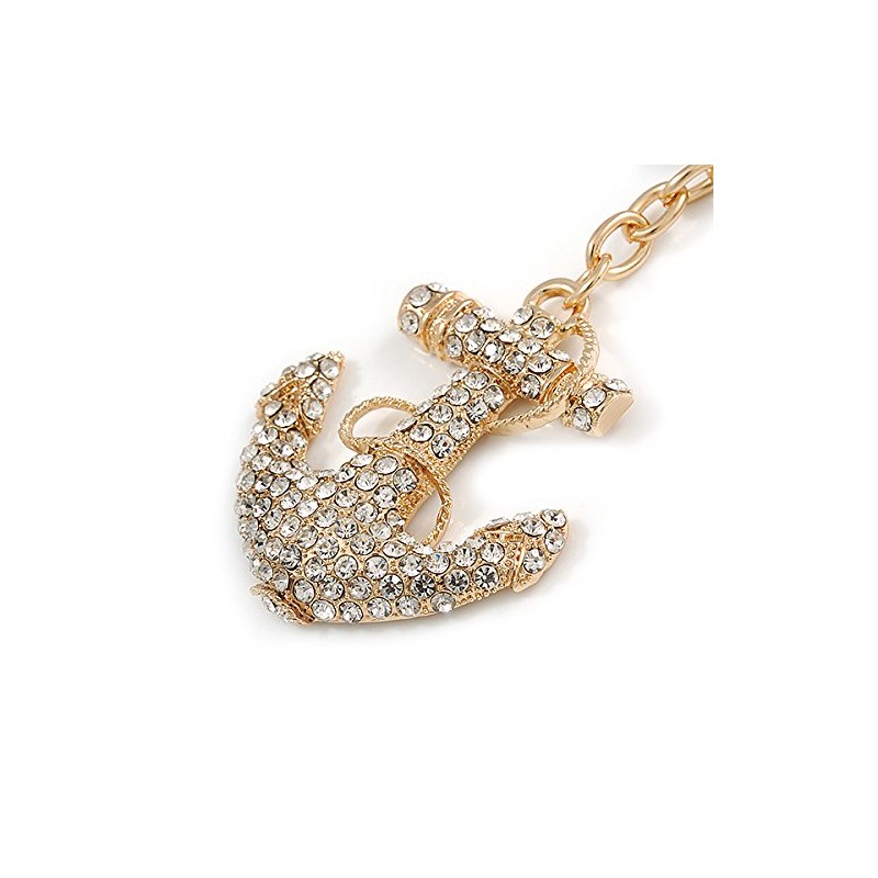 Avalaya Clear Crystal Anchor Keyring/Bag Charm In Gold Tone - 10cm L