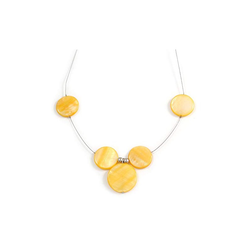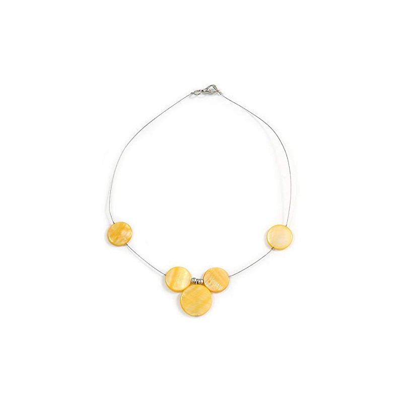 Avalaya Delicate Floating Banana Yellow Shell Bead Wire Necklace in Silver Tone - 44cm L