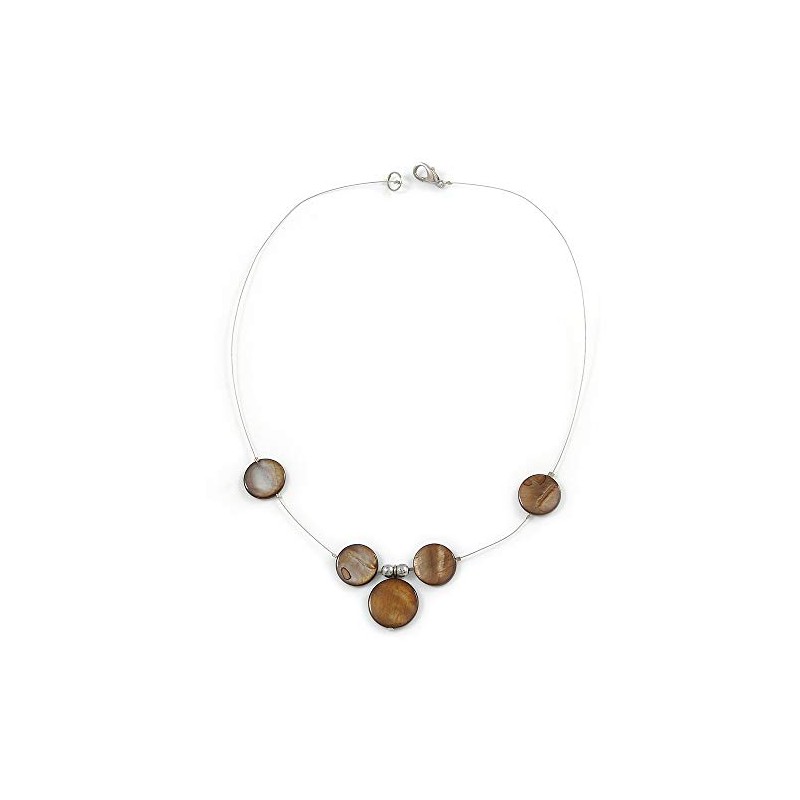 Avalaya Delicate Floating Taupe Shell Bead Wire Necklace in Silver Tone - 42cm L