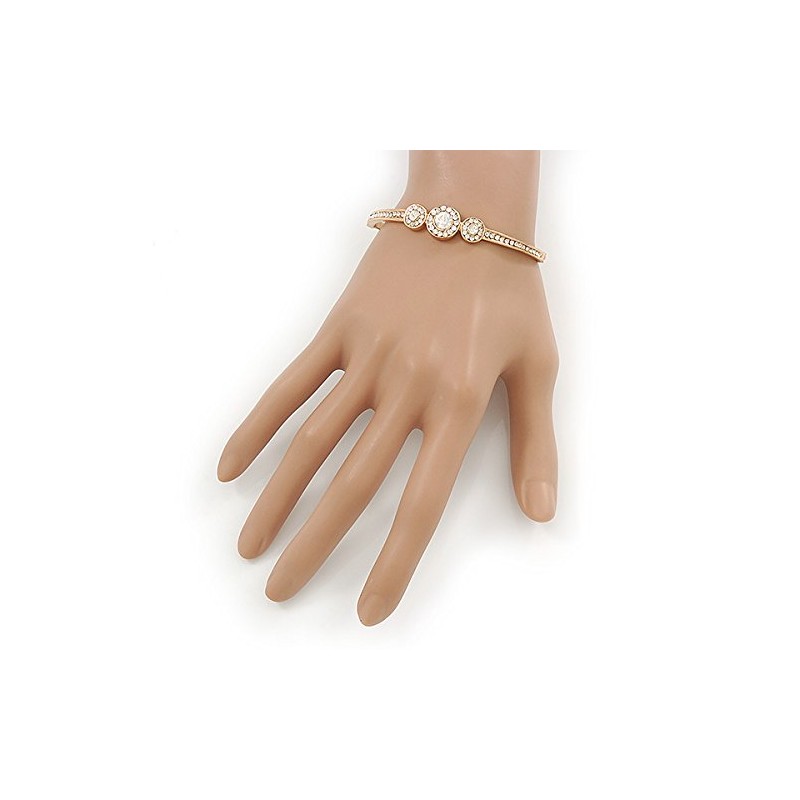 Avalaya Gold Tone, Crystal Triple Circle Bangle Bracelet - 18cm L