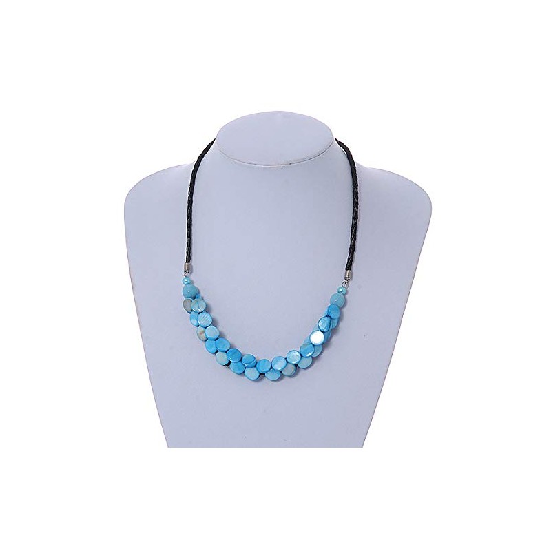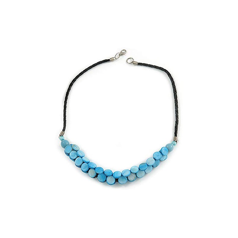 Avalaya Light Blue Coin Shell Bead Cluster with Black Faux Leather Cord Necklace/54cm Long