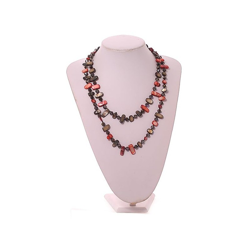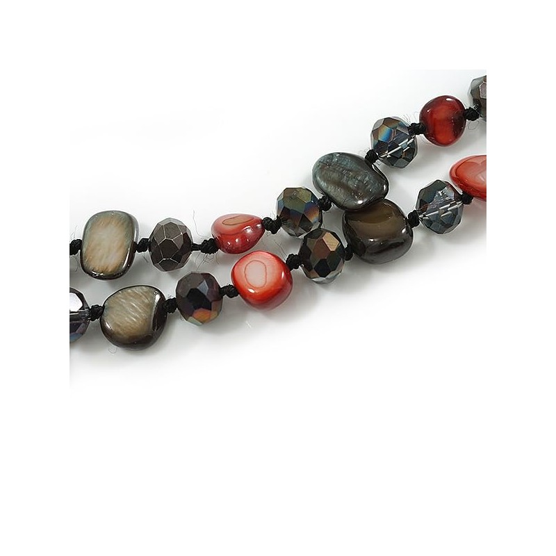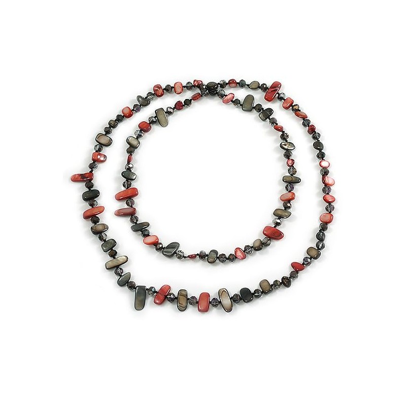 Avalaya Long Shell Nugget and Ash Grey Faceted Glass Bead Necklace in Black/Red - 116cm Long