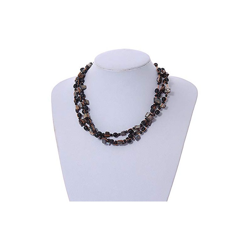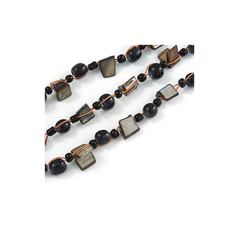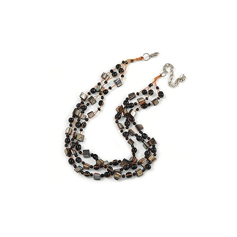Avalaya Multi Strand Black Ceramic Bead with Dark Grey Sea Shell Nugget Orange Cord Necklace/42cm L/ 8cm Ext