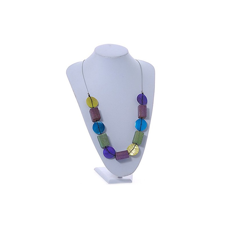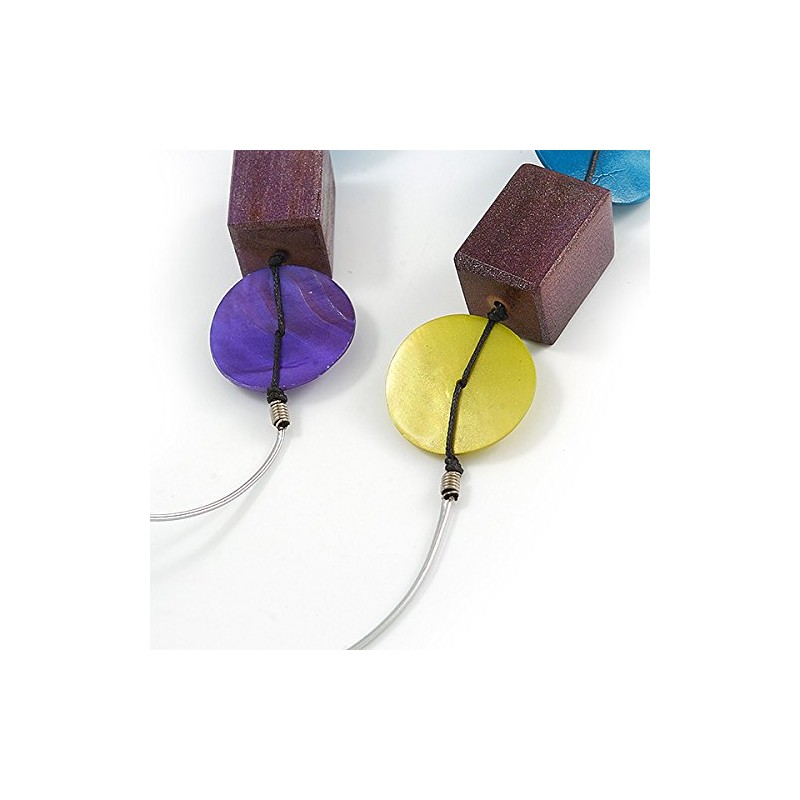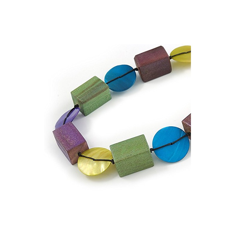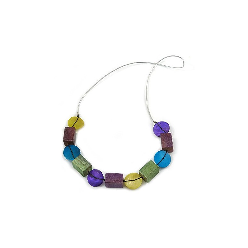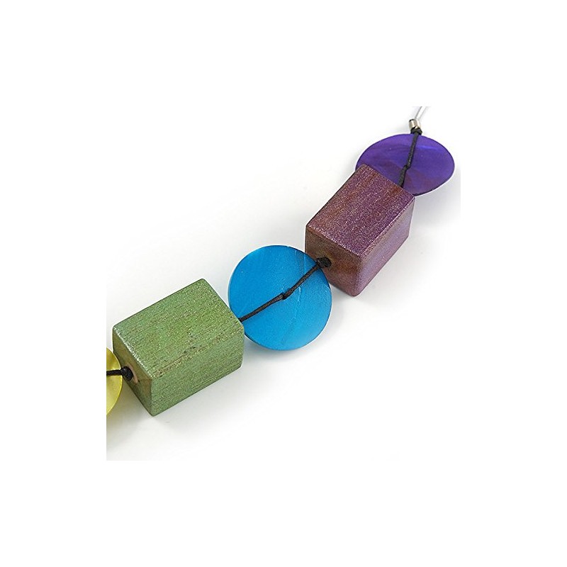 Avalaya Multicoloured Wood/Shell Bead Metallic Silver Cord Necklace - 82cm L
