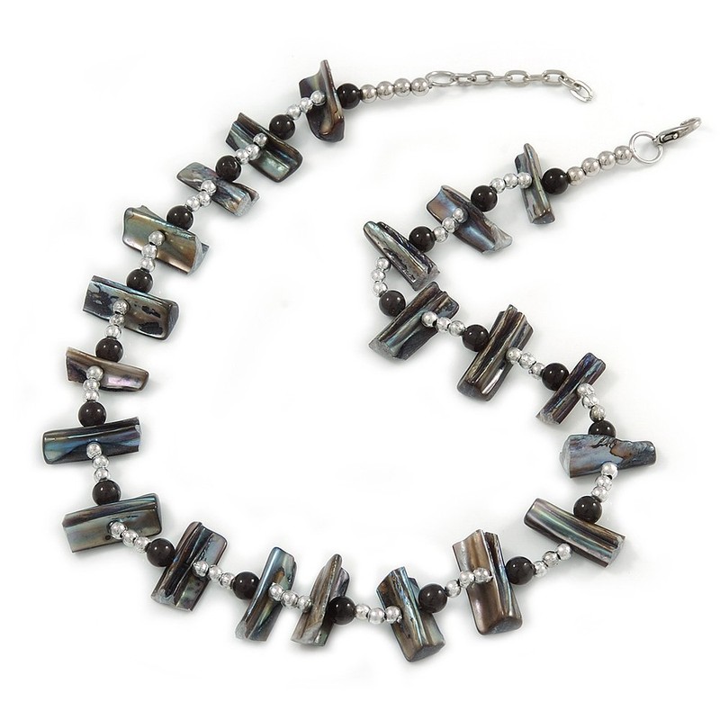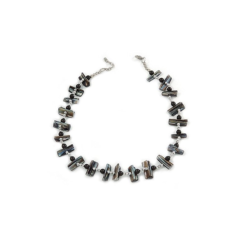 Avalaya Slate Black Shell Nugget & Black Ceramic Bead Necklace In Silver Tone - 46cm L/ 3cm Ext