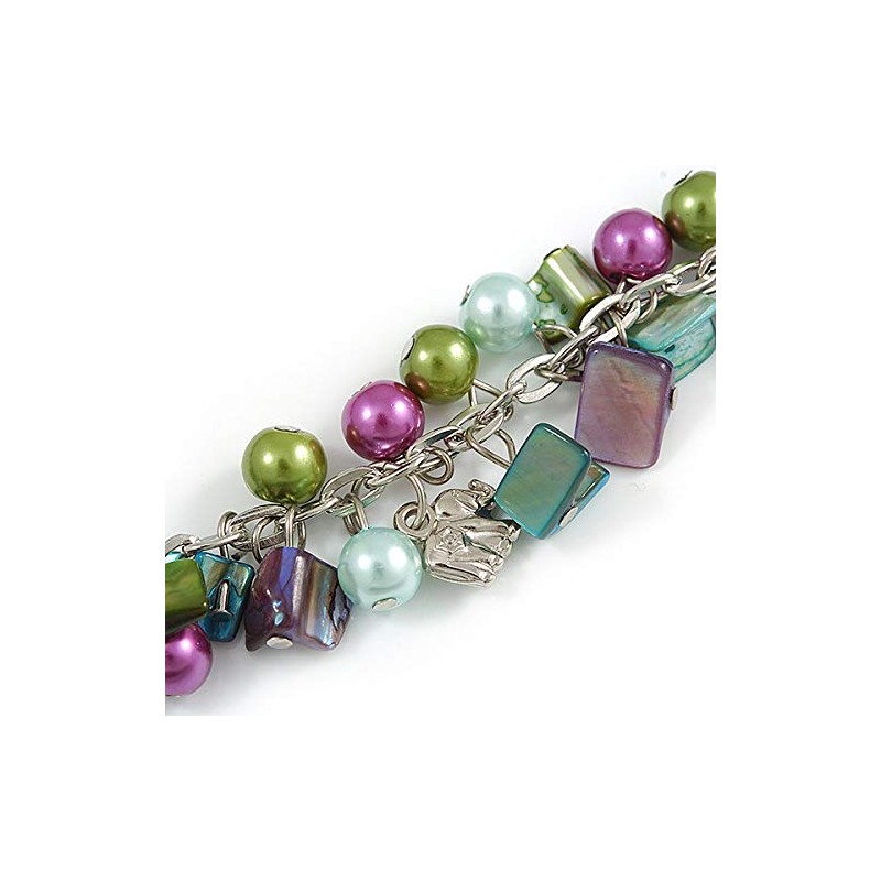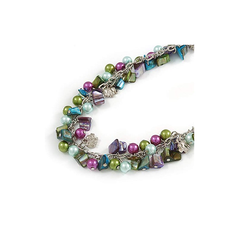 Avalaya Statement Glass, Nugget Silver Tone Chain Necklace in (Multicoloured) - 60cm L/ 8cm Ext