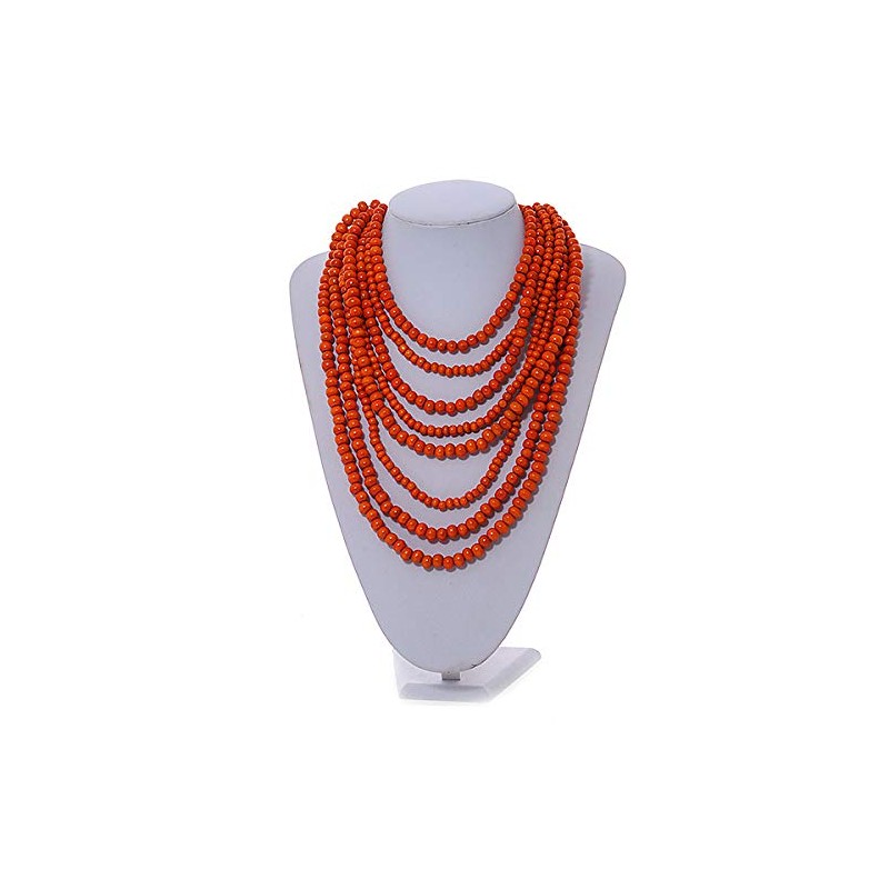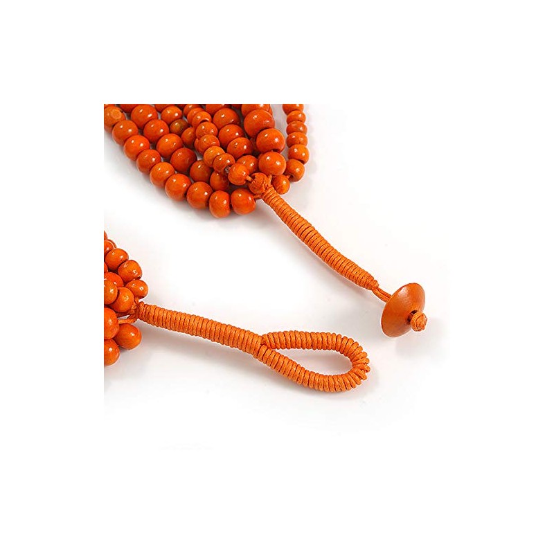 Avalaya Statement Multistrand Layered Bib Style Wood Bead Necklace In Orange - 40cm Shortest/ 70cm Longest Strand