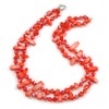 Avalaya Two Row Layered Red Shell Nugget and Glass Crystal Bead Necklace/ 50cm Long