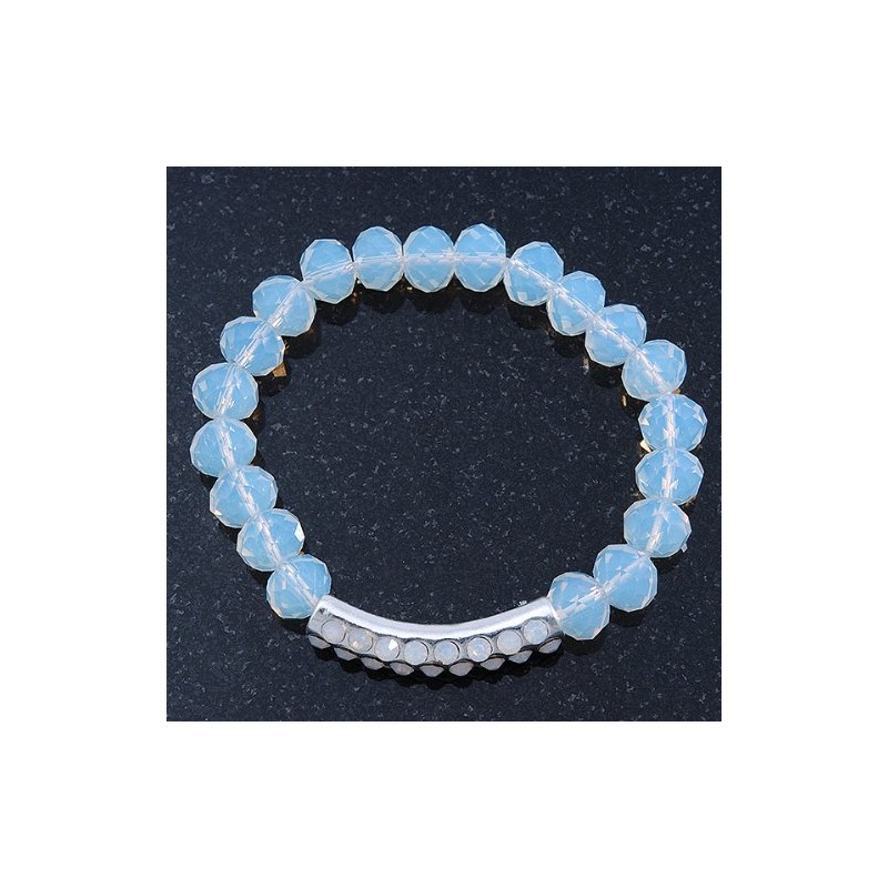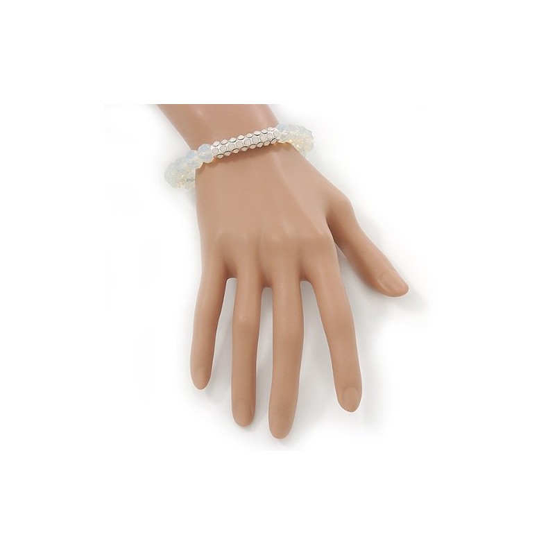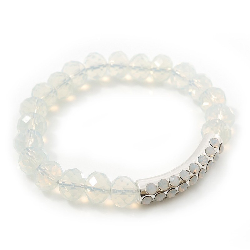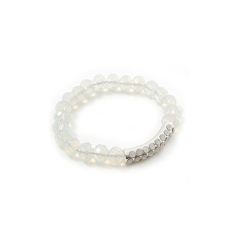 Avalaya White Mountain Crystal and Diamante Elements Stretch Bracelet - Up to 20cm Length