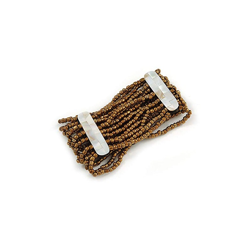 Avalaya Wide Multistrand Gold Bronze Glass Beaded Flex Bracelet With Mother Of Pearl Bars - 22cm L (Large)