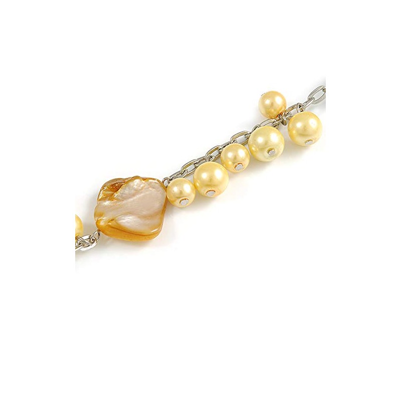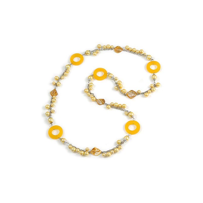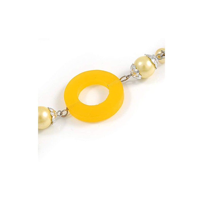 Avalaya Yellow Pearl Shell and Resin Ring with Silver Tone Chain Long Necklace/104cm Long