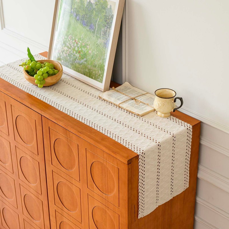 - ELEGANT DESIGN The macrame table runner adds a strong boho look to your home. The exquisite texture makes it an eye-catcher in any room. A nice gift for family and friends
