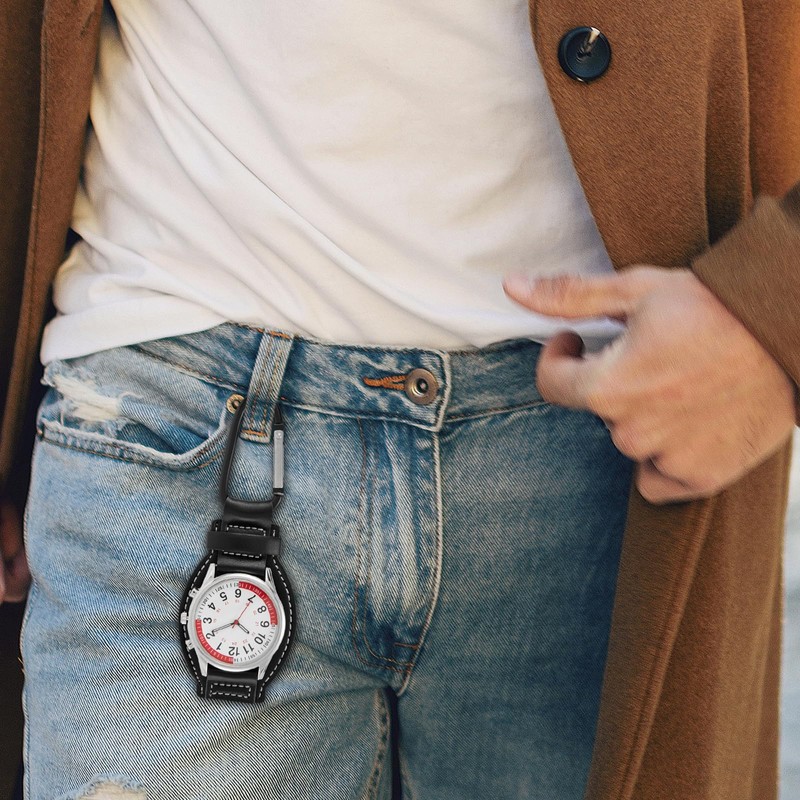 Avaner Pocket Watch with Carabiner Wrist Watch: 2-Piece Carabiner Watch Pulse Calculation Dial Backpack Buckle Watch FOB Analogue Quartz Movement Watch Leather Removable for Climbing Sports Outdoor