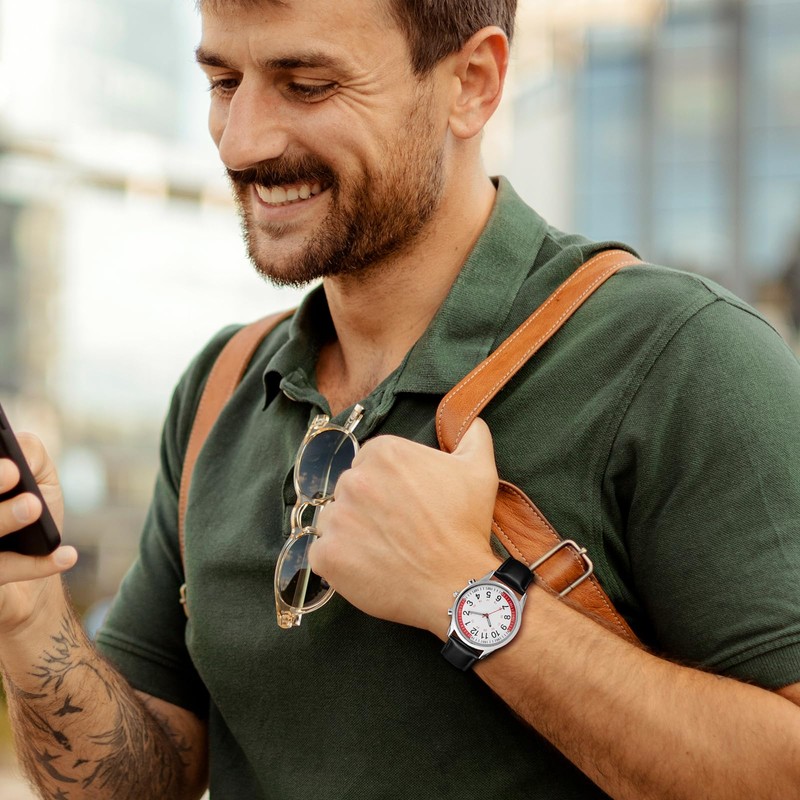- 3. **HIGH QUALITY MATERIALS**: The case is made of alloy, the surface is plated with silver, with a black leather strap, exquisite craftsmanship and high-quality materials ensure the durability and comfort of the watch.