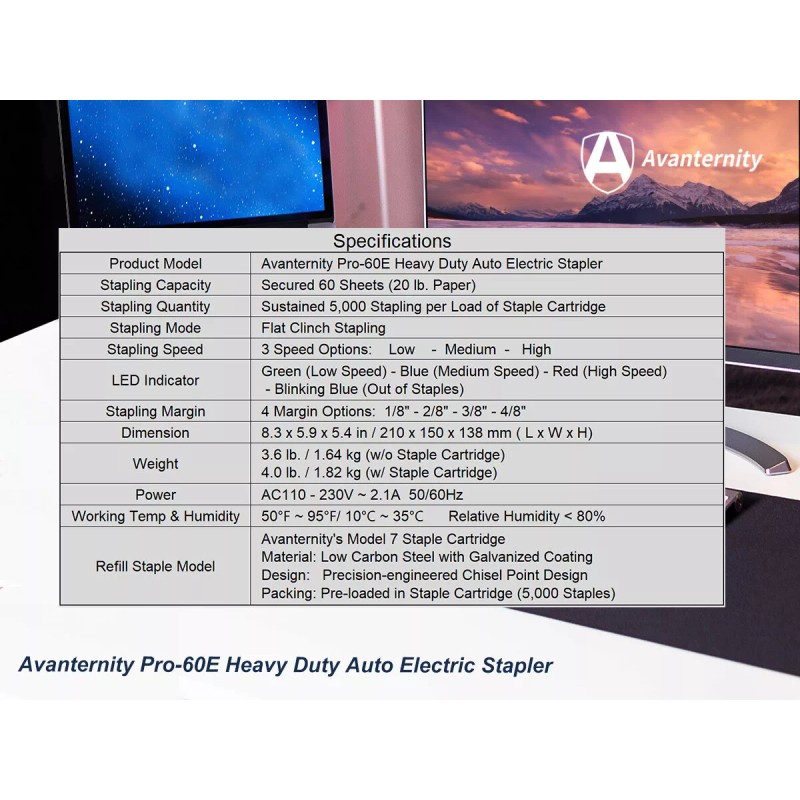 - Model: Avanternity Pro-60E Heavy Duty Auto Electric Stapler