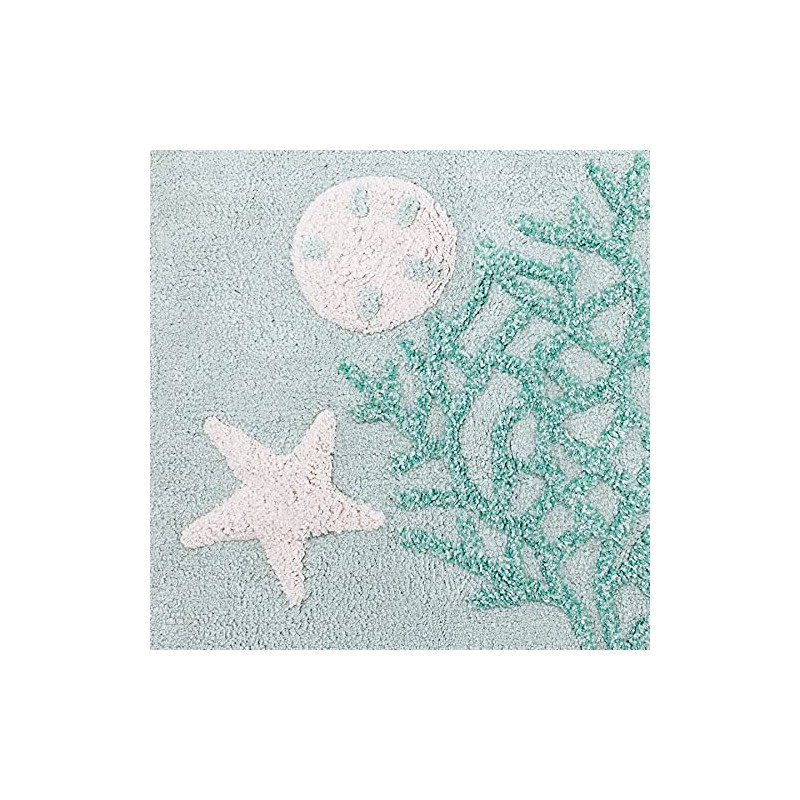 - THE LOOK: Features sea stars, sand dollars, fan coral, rope braid details and cool aqua and ivory colors.