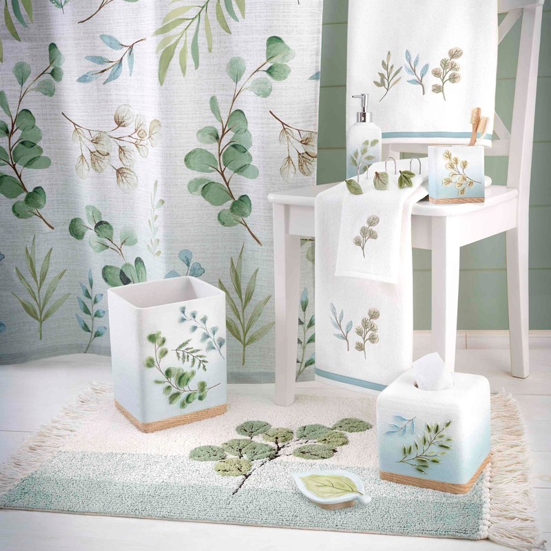 Avanti Linens- Shower Set, Fabric Shower Curtain & 12pc Curtain Hooks, Fall Inspired Bathroom Essentials (Ombre Leaves Collection)
