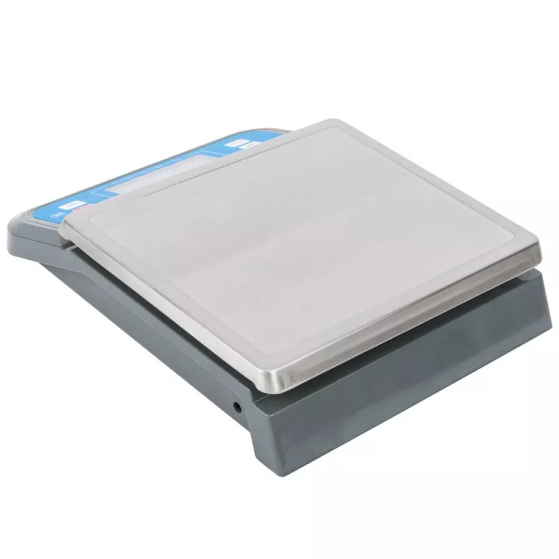 This AvaWeigh scale includes a stainless steel 8 3/5" x 7 1/2" weighing