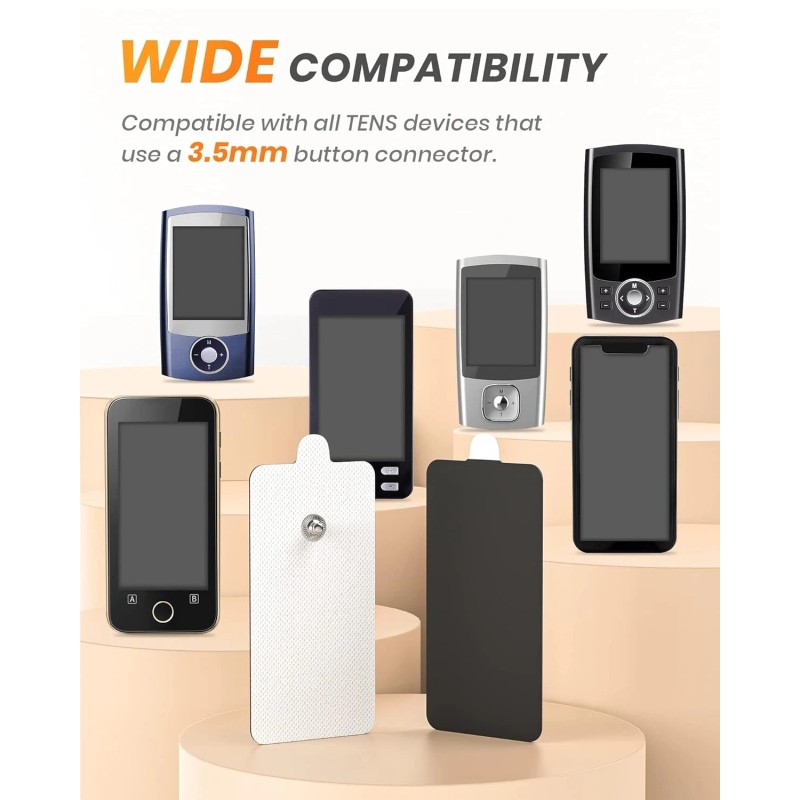 - 10-Pack Pads: AVCOO rectangle TENS Pads fit all TENS/EMS devices (except for wireless TENS unit) that use snap-on connector (3.5mm) leads, and perfectly match your elbow, knee, shoulder, back, etc.