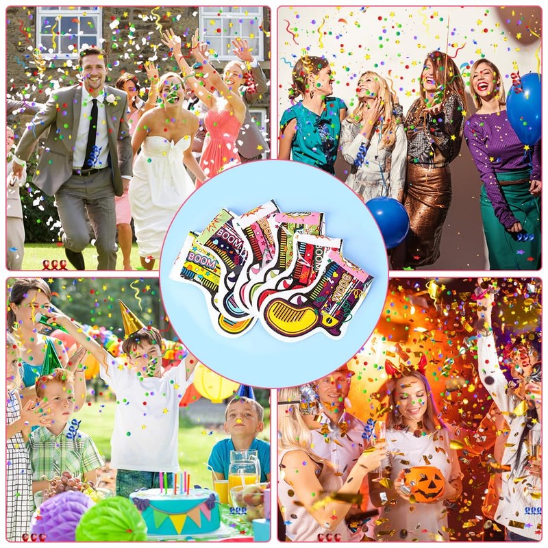 - PORTABLE Each confetti cannon is only the size of a palm, so it can be easily taken with you and makes for a surprise in no time. Ideal for parties and other celebrations, there is enough for a party