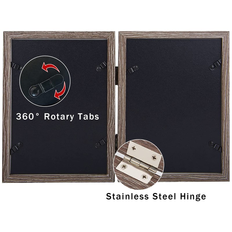 - Easy to Use: Linked by multi-functional stainless steel hinges, can be 180° folded. The backplane fixed with four 360° rotatable tabs, easy to open and insert photos.