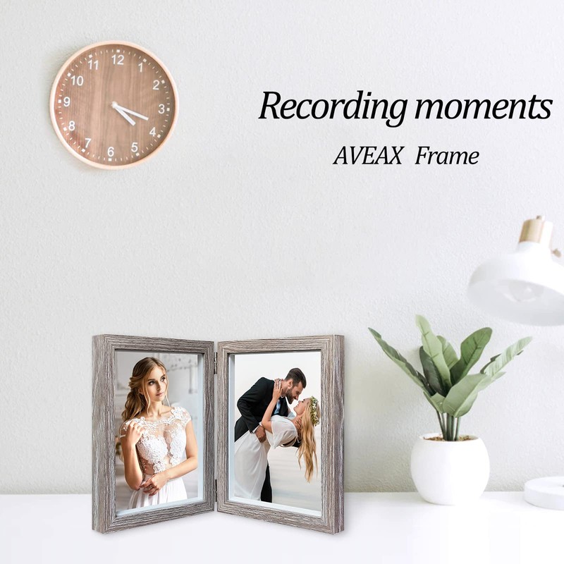 AVEAX Double 5x7 Picture Frame Grey Wood Photo Frame Shadow Box Frame