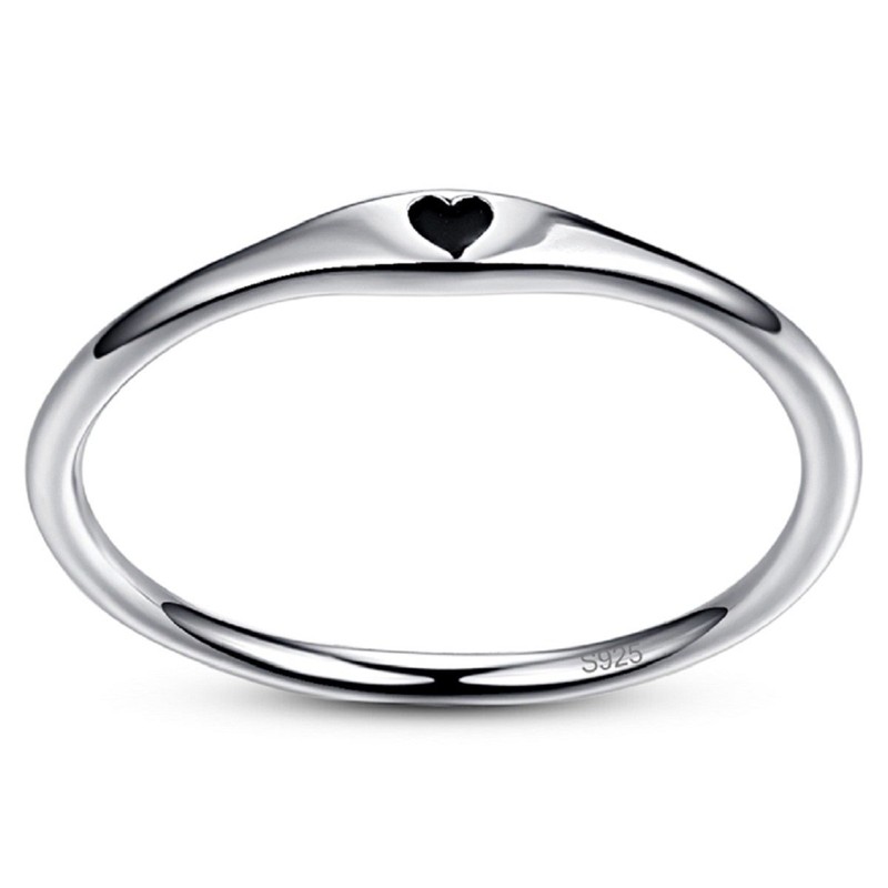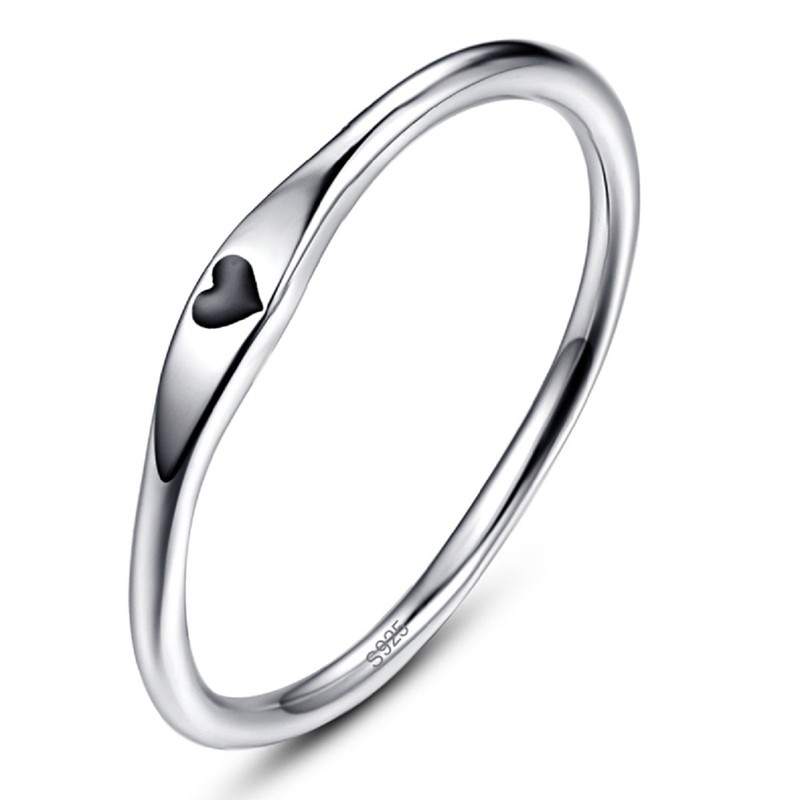 AVECON 925 Sterling Silver Simple Carve Heart Wedding Band Stackable Promise ...