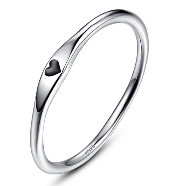 AVECON 925 Sterling Silver Simple Carve Heart Wedding Band Stackable Promise Ring for Her Size 5.5