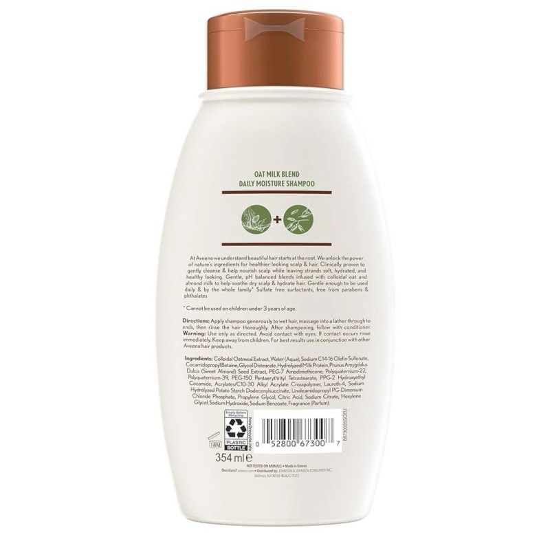 NATURALLY GOOD: Free from sulfates, parabens and dyes, Aveeno Oat Milk Blend Shampoo gently nourishes your scalp. It is not tested on animals and features simple ingredients that won't hurt your hair