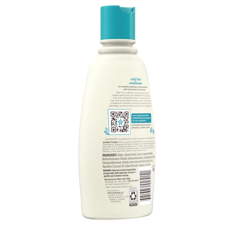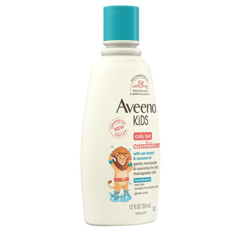 - 12-fluid ounces of Aveeno Kids Coily Hair Conditioner with oat extract and coconut oil gently detangles and moisturizes your toddler's natural curls, leaving coils smooth and easy to comb