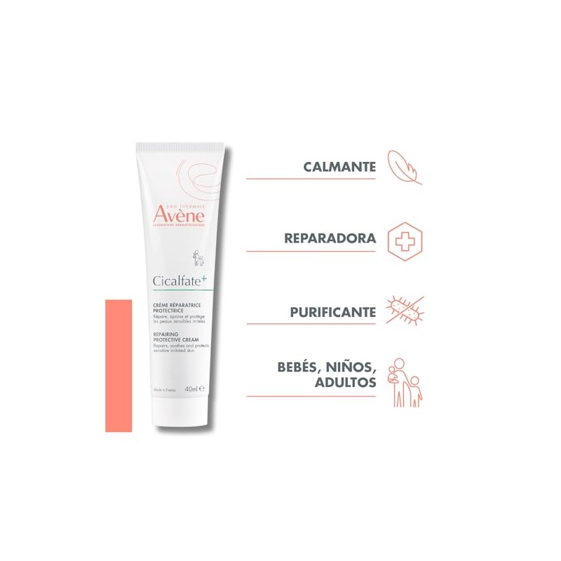 Avene - AVENE Cicalfate+ Crema Reparadora, Calma, protege y ayuda a recuperar piel irritada, Uso diario para toda la familia, 40ml