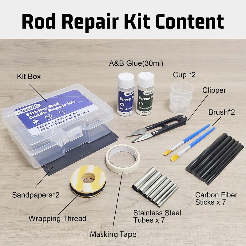 Aventik Fishing Rod Repair Kit Complete with Accessories, Carbon Fiber Stick and Stainless Tube for Broken Fishing Pole Maintenance