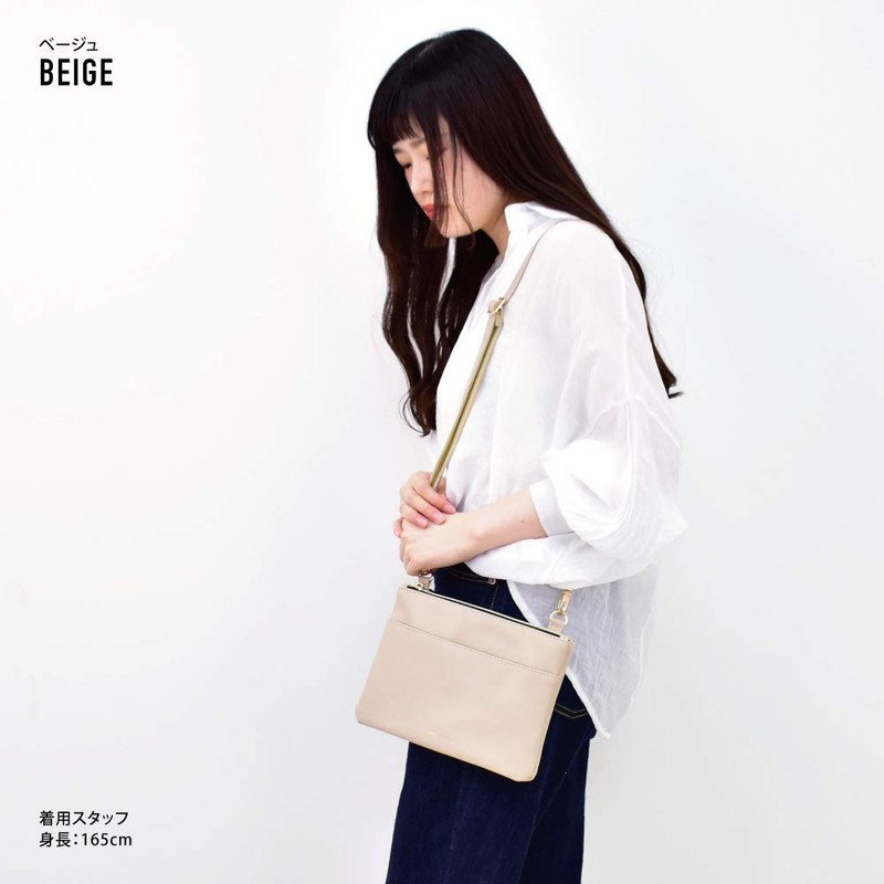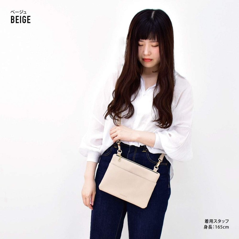 Aventura slt-30625 Sacoche Shoulder Bag, Crossbody One-Shoulder Bag, Shoulder Pouch, Synthetic Leather, Lightweight, A5 Size, Includes Key Hook, beige