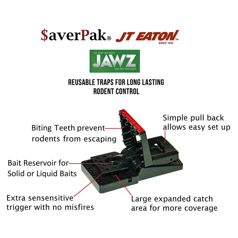 With impressive bite radius features like a New expanded catch area, Biting Teeth and Bait Reservoir the $averPak Jawz Mouse Traps take a bite out of the competition!