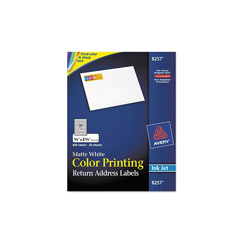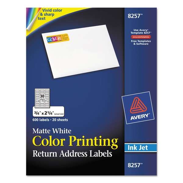 Avery 8257 Inkjet Color-Print Address Labels, 3/4 x 2-1/4, Matte White, 600/PK