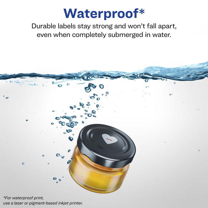Avery Durable Waterproof Heart Labels, Sure Feed Technology, 0.75" x 0.75", 800 Total, Oil and Tear-Resistant Waterproof Labels, Print-to-The-Edge, Laser/Pigment-Based Inkjet Printable