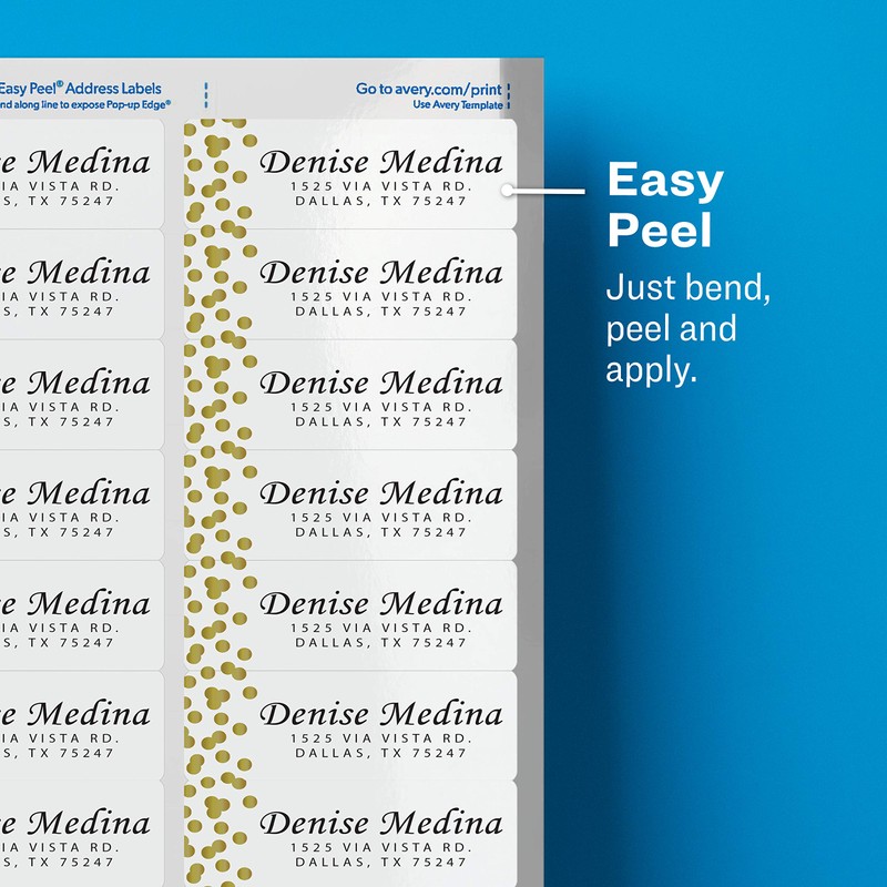 - Easy Peel label technology makes it simple to peel and apply labels quickly; fold back the sheet to display the Pop-Up Edge for convenient peeling