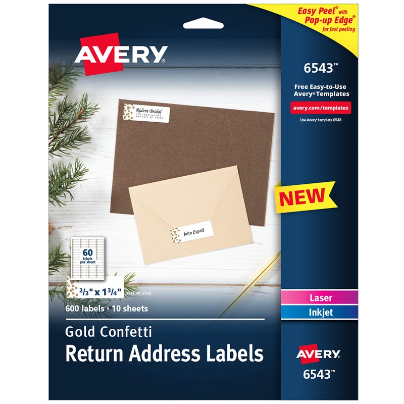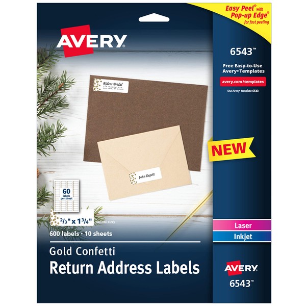Avery Easy Peel Return Address Labels, 2/3" x 1-3/4", Gold Confetti Design, 600 Labels (6543)