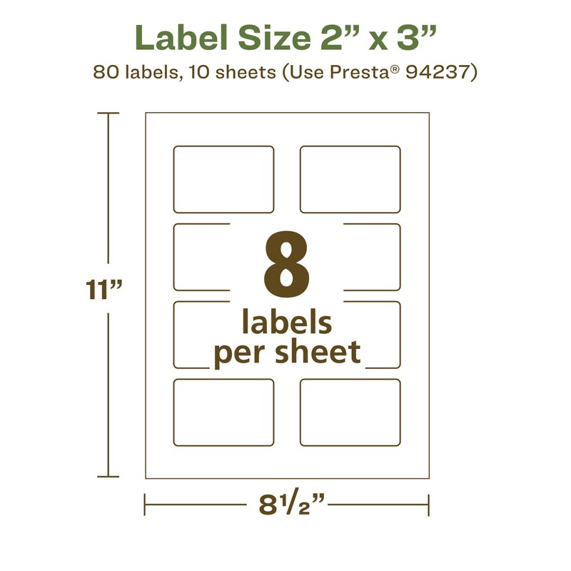 Avery EcoFriendly Matte White Recycled Rectangle Labels, 2" x 3", Print-to-The-Edge, Matte White Labels, Permanent Label Adhesive, Laser/Inkjet, 80 Printable Labels