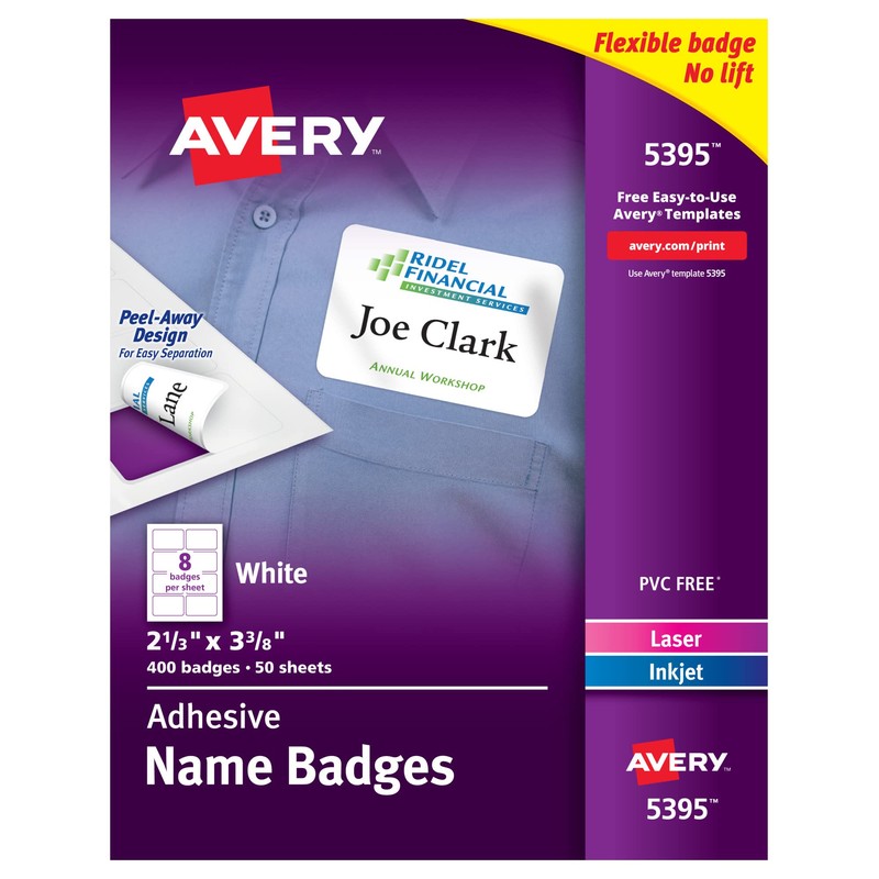 • Save time before your event with the unique peel-away design that allows you to separate each name badge from the printed sheet with the label backing still intact until ready to use
