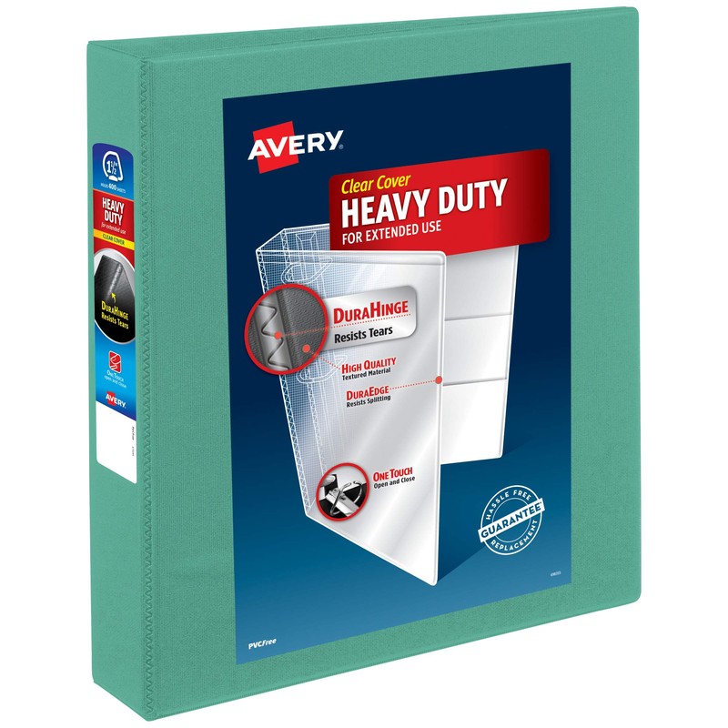 Turn up the brightness of your school supplies with Avery heavy duty view binders in a brilliant shade of mint. Not your basic binder, these energetic mint binders provide some extra pop for people looking for more colorful school binders. Avery heavy duty binders also feature DuraHinge and DuraEdge technology that helps keep the binder spines and edges from ripping and tearing. Avery view binders feature clear overlays on the spine and outside covers to allow for easy personalization with customized insert sheets. The 1.5" binder rings are attached to the back cover, keeping your sheets flat at all times and avoiding wrinkles. Hold up to 375 sheets of paper with the 1.5" slant rings. Four clear pockets are attached to the inside covers to provide extra room for loose sheets. Tough yet stylish, Avery heavy duty mint-colored binders are cool binders for school, the office, home and more.