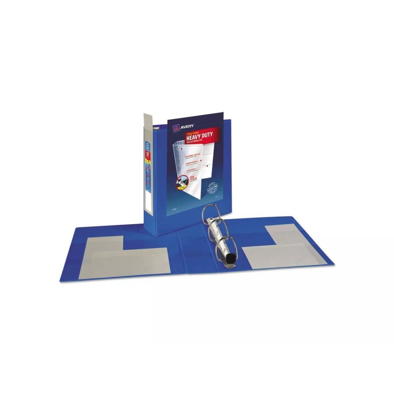 This Heavy-Duty View Binder with One Touch rings is perfect for extended use. From everyday referencing to classroom notes and home business use-this binder's strong enough to handle them all. The DuraHinge(R) design is stronger, lasts longer and resists tearing, while the DuraEdge(R) feature makes the sides and top more pliable to resist splitting. Our deep texture film offers a smoother finish and features a linen pattern for high quality look and feel. Just pull the lever to open the rings for adding, replacing and removing pages. Then push to lock the rings in place. Even when filled to its 400-page capacity, this binder still has four stacked pockets for a bit of extra space inside. Customize the pacific blue cover with free, easy-to-use templates and designs at avery.com/print.
