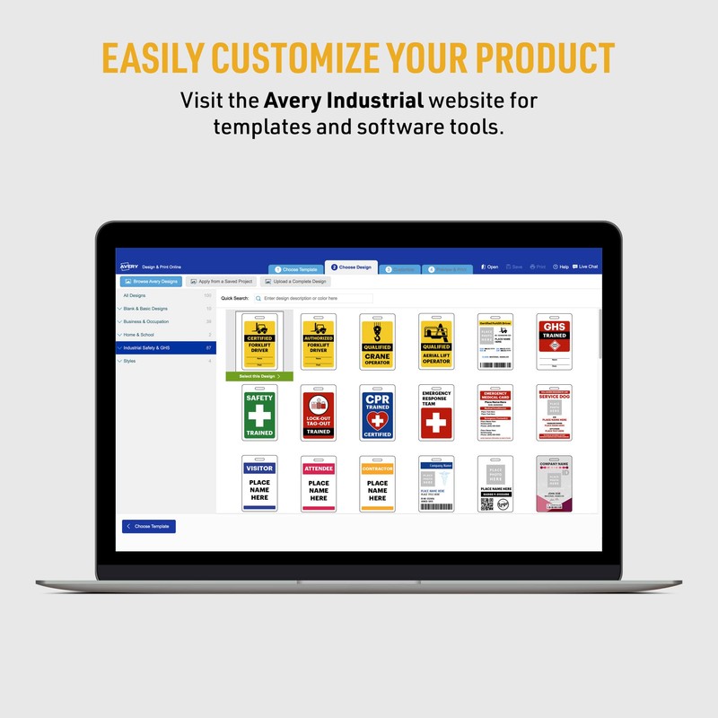 - Crea e imprime etiquetas de nombre duraderas e insignias de identificación para certificaciones de seguridad, licencias de carretilla elevadora, etiquetas de nombre de seguridad, tarjetas de identificación del personal y mucho más
