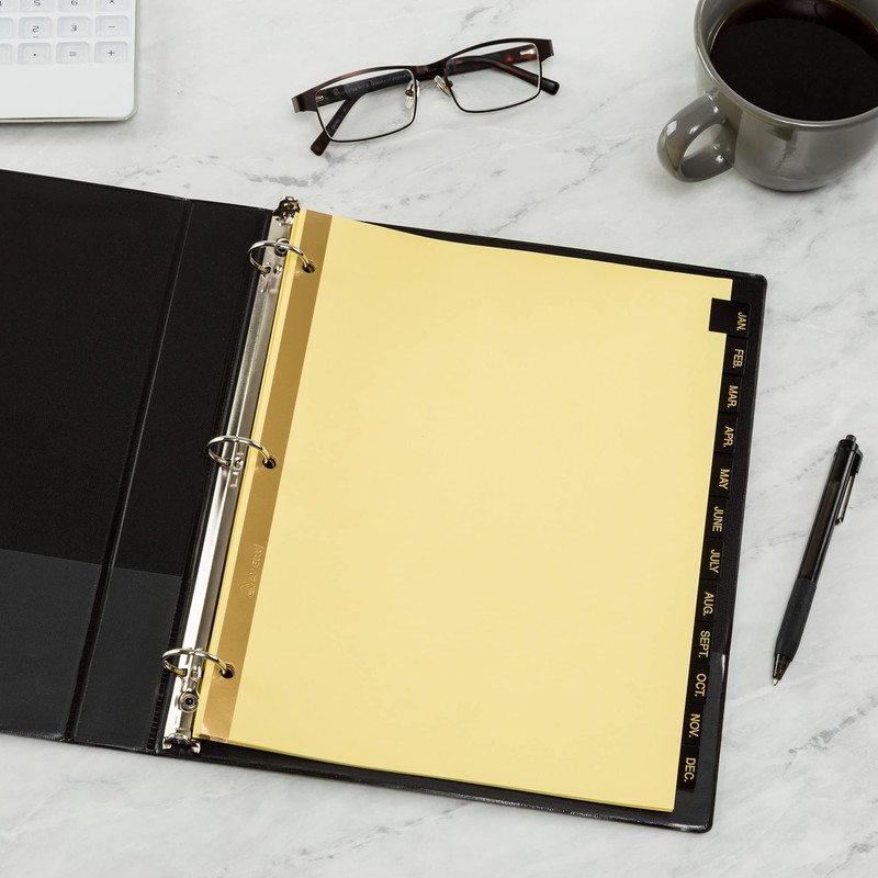 - Quickly sort your monthly bills and other documents using 3 ring binder dividers with pre-printed Jan-Dec tabs